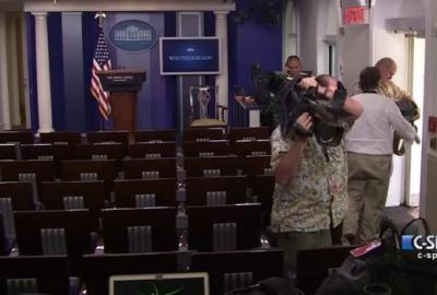 تم إخلاء قاعة الصحافة في البيت الأبيض، خلال المؤتمر الصحافي اليومي، وذلك على خلفية إنذار بوجود قنبلة. ودخل عناصر في جهاز الأمن السري المكلّف حماية الرئيس قاعة الصحافة وقطعوا المؤتمر الصحافي الذي كان ينقل مباشرة عبر القنوات الإخبارية الأميركية.