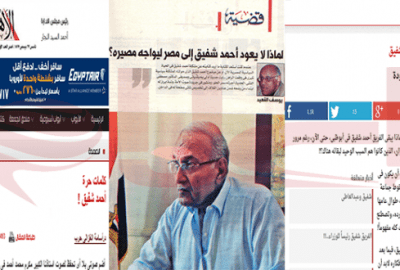 ثلاثة كتاب، هم يوسف القعيد، اسامة الغزالي حرب، وسليمان جوده ركزوا في مقالاتهم التي نشرت في أسبوع واحد على مصير الفريق أحمد شفيق وطرحوا العديد من التساؤلات حول وجوده في الأمارات حتى الان.
