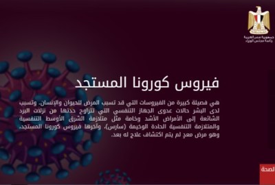 بالرغم من تسجيل إصابتين فقط بفيروس كورونا في مصر، إلا أن حالة الفزع الموجودة من الفيروس الرئوي القاتل والاستعدادات التي يتم اتخاذها من قبل الحكومة؛ لتجنب نقل الوباء الذي انتشر بأكثر من 30 دولة وأصاب نحو 100 ألف شخص وتسبب في وفاة أكثر من 3 آلاف منهم، دفعت مجلس الوزراء لتدشين موقع الكتروني توعوي عن الفيروس المستجد، في سابقة هي الأولى من نوعها، وفقًا لما ذكره البيان صحفي.