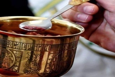 – بملعقة واحدة تسمى “الماستير” ومن كأس واحد يطلق عليه “أواني المذبح المقدس” تقام تلك الطقوس.