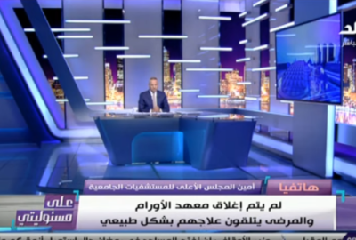 وتابع خلال مداخلة هاتفية مع الإعلامي أحمد موسى ببرنامج «على مسئوليتي» المذاع على قناة «صدى البلد»، أن هناك 60 مريضا في الأقسام الداخلية لمعهد الأورام لم يتوقف المعهد عن تقديم الخدمات الطبية لهم، وأكد أن إجراءات الفحص أثبتت عدم إصابتهم بكورونا، موضحا أن جميع العاملين في معهد الأورام يتم إجراء المسح الطبي عليهم.