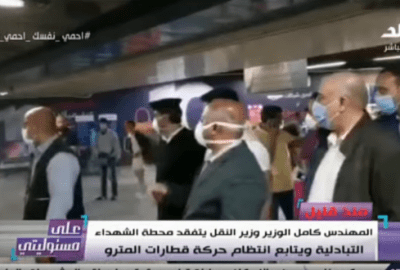 ناشد الوزير مواطني المحافظات بعدم زيارة القاهرة إلا للضرورة، مُضيفًا: “عدد ركاب السكك الحديدية الجمعة 3 أبريل بلغ 250 ألف، ضعف الجمعة قبل الماضية”، مشيرًا إلى أن السيدات ملتزمات في المترو إلى حد كبير بارتداء الكمامات بعكس الرجال.