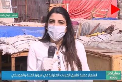 استعرضت مراسلة التلفزيون المصري جيرمين إبراهيم، خلال برنامج صباح الخير يا مصر المذاع عبر شاشة قناة الأولي، تفاصيل استمرار عملية تطبيق الإجراءات الاحترازية في أسواق العتبة والموسكي، وذلك ضمن الإجراءات الوقائية لمواجهة فيروس كورونا المستجد كوفيد- 19.