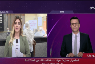 استعرضت مراسلة قناة dmc، أميمة بدري، اليوم الأربعاء، تفاصيل عمليات صرف المنحة المقدرة حسب القرار الصادر من رئاسة الجمهورية للعمالة الغير منتظمة داخل البنك الزراعي ببني سويف، بعد انتشار فيروس كورونا المستجد.