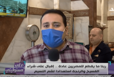 استعرض مراسل قناة صدي البلد، عاصم الشدويلي، مساء اليوم السبت، تفاصيل إقبال المواطنين على شراء الفسيخ والرنجة استعدادًا لشم النسيم في ظل إجراءات الدولة لمواجهة انتشار فيروس كورونا المستجد.