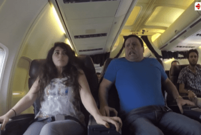 وأصيب إدوارد بحالة من الفزع، بعد قيام الطيار بالانخفاض بالطائرة بشكل مفاجئ، موجهًا كلامه وسط صراخ الركاب لمضيف الطائرة: “أبوس أيدك لف وأرجع، لو سمحت نزلنا”.
