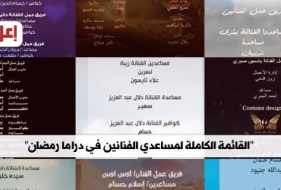 شهدت الدراما الرمضانية على تترات الأعمال الدرامية تواجد أسماء العديد من مساعدي الفنانين، فيما كان لافتا وجود أسماء أعداد كبيرة من المساعدين المصاحبين لبعض الفنانين في مقدمتهم محمد رمضان الذي صاحبه 8 مساعدين في مهام متنوعة، فيما كان لافتًا حرص بعض الفنانين على كتابة أسماء السائقين الخاصين بهم، فيما تولى إدارة أعمال بعض الفنانين أقاربهم مثل تيام مصطفى قمر الذي تولت والدته إدارة أعماله.شهدت الدراما الرمضانية على تترات الأعمال الدرامية تواجد أسماء العديد من مساعدي الفنانين، فيما كان لافتا وجود أسماء أعداد كبيرة من المساعدين المصاحبين لبعض الفنانين في مقدمتهم محمد رمضان الذي صاحبه 8 مساعدين في مهام متنوعة، فيما كان لافتًا حرص بعض الفنانين على كتابة أسماء السائقين الخاصين بهم، فيما تولى إدارة أعمال بعض الفنانين أقاربهم مثل تيام مصطفى قمر الذي تولت والدته إدارة أعماله.شهدت الدراما الرمضانية على تترات الأعمال الدرامية تواجد أسماء العديد من مساعدي الفنانين، فيما كان لافتا وجود أسماء أعداد كبيرة من المساعدين المصاحبين لبعض الفنانين في مقدمتهم محمد رمضان الذي صاحبه 8 مساعدين في مهام متنوعة، فيما كان لافتًا حرص بعض الفنانين على كتابة أسماء السائقين الخاصين بهم، فيما تولى إدارة أعمال بعض الفنانين أقاربهم مثل تيام مصطفى قمر الذي تولت والدته إدارة أعماله.