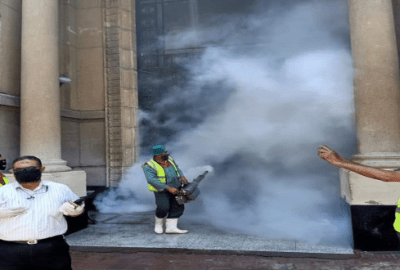 ٨- التطهير اليومى لكافة المكاتب والطرقات والقطاعات ومناطق المطبعة وتطهير وتعقيم جميع مداخل المؤسسة بالمواد المطهرة والكلور.. وأيضًا غسيل سيارات المؤسسة بالمواد المطهرة والكلور، وتعقيم الأسانسيرات ومناطق العمل الحيوية بالمؤسسة والتى تشهد تعامل كثير او كثافة مرتين يوميًا على الأقل.