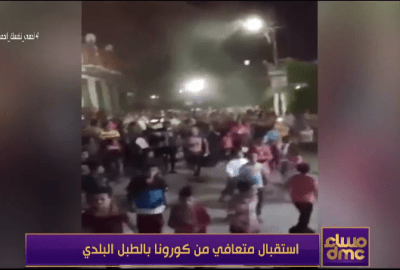 عرضت الإعلامية إيمان الحصري في حلقة السبت من برنامج مساء dmc على قناة dmc، مقطع فيديو تداوله مستخدمو وسائل التواصل الاجتماعي مؤخرا، لاستقبال أهالي قرية بالمنوفية لشخص متعافي من فيروس كورونا المستجد.