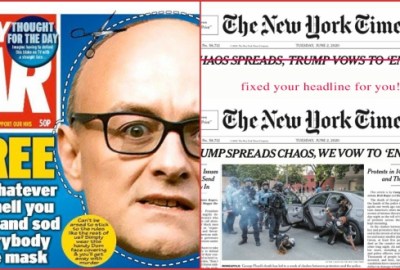 قامت صحيفة ديلي ستار بطباعة قناع وجه بصورة مستشار رئيس الوزراء دومينيك كامينجز، وهو قابل للقص من غلاف الصحيفة، ودعت البريطانيين إلى الاحتفاظ بالقناع مع تعهد بأنها ستسمح لأي شخص يرتدي هذا القناع بأن يفعل “ما يحلو له”، وتأتي فكرة القناع ردًا من الصحيفة على فضيحة مخالفة مستشار بوريس جونسون ورجله المقرب لإجراءات الحظر وإجراءات مكافحة فيروس كورونا وسفره عدة مرات بين لندن ومسقط رأسه في دورهام، بل شوهد كامينجز أثناء ذهابه وعودته أثناء الحظر لمسافة 60 ميلا من دورهام إلى قلعة بارنارد، وادعى أنه كان يجرب ما إذا كان بصره جيدًا بما يكفي لقيادة السيارة!