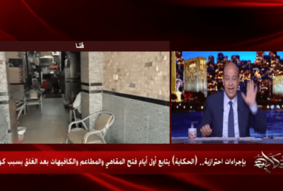 علق الإعلامي عمرو أديب على قرار الحكومة بإلغاء حظر التجول وفتح دور العبادة، والمقاهي، والمطاعم، ابتداء من أمس السبت، بعد استمرار غلقها لمدة تزيد عن ثلاثة أشهر، لمجابهة فيروس كورونا المستجد.