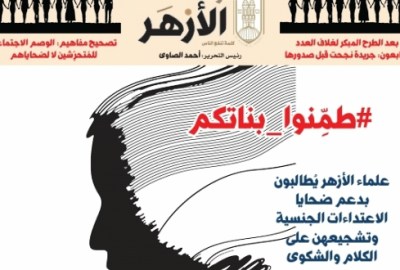 صدر العدد الجديد من صحيفة “صوت الأزهر”، بعد أيام من طرح غلافه مدشنا حملة “طمنوا بناتكم”، ردا علي تزايد حالات التحرش، وثقافة تبريره ومحاولة ربطه بملابس المرأة وسلوكها.