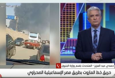 قال حمدي عبد العزيز المتحدث باسم وزارة البترول، إن خط المازوت الذي انفجر أمس وتسبب في حريق هائل بطريق مصر الإسماعيلية الصحراوي، موجود تحت الأرض بمسافة متر ونصف، موضحا أن هذا الخط ينقل البترول من رأس شقير بالبحر الأحمر إلى مسطرد بالقاهرة.
