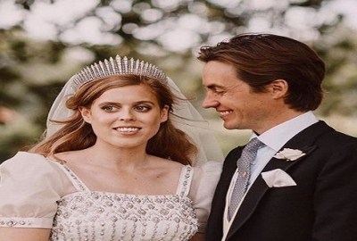 الصور الثلاثة التقطها بنيامين ويلر، مصور الملكة، وأعرب عدد كبير من مستخدمي مواقع التواصل الاجتماعي عن أمنياتهم الطيبة للعروسين وسعادتهم بمشاهدة “إيدو موزي” وهو يتلألأ بصحبة عروسه “بياتريس” في الصور الجديدة التي أظهر فستان زفاف ملكي رائع، وقالت صحيفة الميرور البريطانية إن نفس الفستان ارتدته الملكة إليزابيث الثانية، في مناسبات عديدة بما في ذلك أثناء حضور الملكة العرض الأول لفيلم بريطاني رائع في لندن قبل 60 عامًا تقريبًا، والفستان من قماش التفتا من تصميم نورمان هارتنيل، على سبيل الاستعارة من الملكة.