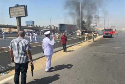 تمت السيطرة على الحريق والنيران التي اشتعلت في مكان الحادث، كما تم غلق الطريق الرئيسي وتحويل الحركة المرورية على الطريق الداعم، واتخاذ اللازم لتسيير الحركة المرورية، وإعادتها لطبيعتها.