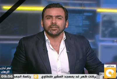 الحسيني بدأ برنامجه بالوقوف دقيقة حداد على روح بركات، الذي استشهد اليوم بعد تفجير موكبه بمنطقة مصر الجديدة.