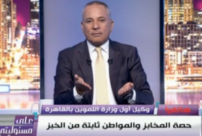 قال “موسى” خلال حلقة اليوم من برنامج “على مسئوليتي” المذاع عبر قناة “صدى البلد”: “ولا مواطن من الـ100 مليون سعيد بقرار خفض وزن رغيف العيش”، موضحًا أن القرار ليس في صالح المواطن المصري.