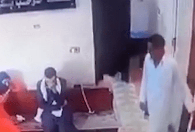 ظهر الشاب خلال الفيديو يسير على قدميه بطريقة طبيعية برفقة زوجته قبل الصعود إلى العيادة، وبمجرد جلوسه للحظات بمكان الانتظار، أمسك رأسه وسقط على الأرض متوفيا.