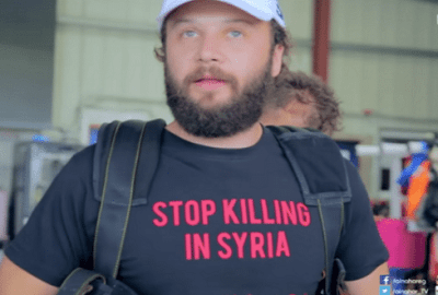 مكسيم خليل، حرص على ارتداء “تي شيرت” مكتوب عليه “اوقفوا القتل في سوريا”، باللغتين العربية والإنجليزية، ورفض ارتداء ملابس ثقيلة حتى يظهر الشعار، بالرغم من أن درجة الحرارة في الجو تصل إلى ما دون الصفر.