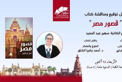 تستضيف ساقية الصاوي، في الزمالك، يوم الأربعاء 28 أكتوبر الجاري، حفل توقيع ومناقشة كتاب “قصور مصر” للكاتبة الصحفية سهير عبد الحميد، مساعد رئيس تحرير الأهرام.