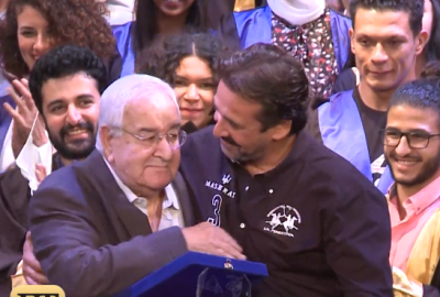 تابع: “اليوم حلو أوي عشان غير أنه يوم تكريم والدي، كمان أنا خريج دفعة 97 فداخل المعهد وشايف شريط ذكرياتي كله قدامي؛ لأني طالع من هنا والمكان ده له معزة خاصة عندي”.