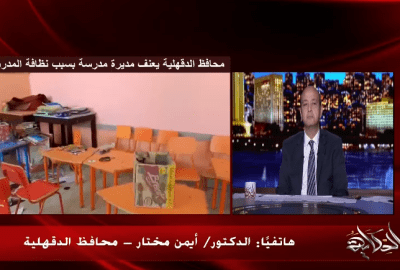 علق الدكتور أيمن مختار، محافظ الدقهلية، على الفيديو المتداول بشأن تعنيفه لمديرة مدرسة عمر مكرم، التابعة لمركز دكرنس، والذي ظهرت فيه وهي تخلع شبابيك أحد الفصول لتنظيفه.