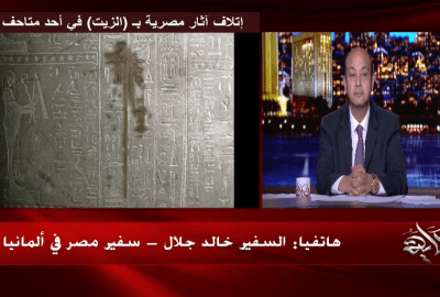 أوضح “جلال” خلال مداخلة هاتفية في برنامج “الحكاية” المذاع على شاشة mbc مصر، ويقدمه الإعلامي عمرو أديب، أنهم وجدوا زيت ملقى على حوالي 69 قطعة في أكثر من متحف بالجزيرة، أضاف أن هناك 16 قطعة مصرية من بينهم.