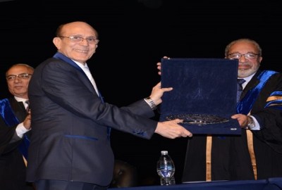 جاء ذلك خلال تكريمه في حفل الجامعة، بمسرح الصوت والضوء بمنطقة أهرامات الجيزة مساء الأحد.