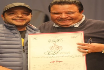 أهدى جلال، مخرج “سينما مصر” شهادة تقدير للفنان محمد هنيدى، موقعة من كل أبطال العرض تحمل عنوان “إلى من عاش ليبقى”، عقب عرض المسرحية.
