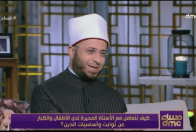 أضاف “الأزهري” خلال استضافته في برنامج “مساء dmc” الذي يقدمه الإعلامي رامي رضوان عبر شاشة dmc، أنه يجب الاهتمام بأسئلة الطفل وبذل الجهود المجتمعية للإجابة عليها، لذا يجب على كل أب وأم عدم الفزع من أسئلة الأطفال الوجودية قائلة: “اللي هي ربنا جه إزاي؟ هو ربنا ليه مش بنشوفه؟ وهكذا”.