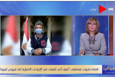 وقالت: “أنا أهملت وإتكسفت من لبس الكمامة وماتسلموش على حد بإيديكم وحافظوا على التهوية والتباعد والتغذية، كلوا برتقانة وحزمة جرجير أو جوافة وحتة جبنة قريش دي نصايح الدكتور حافظوا عليها عندنا الحاجات دي رخيصة، إحموا نفسكم مع الكمامة ” .