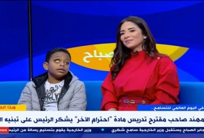 حل الطفل “مهند” صاحب مقترح تدريس مادة احترام الآخر بالمدارس، ضيفا على على برنامج “هذا الصباح” الذي تقدمه الإعلامية أسماء مصطفى على قناة إكسترا نيوز.