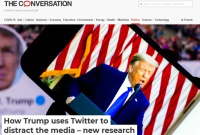 وقدمت المجلة في بحثها الجديد أول دليل تجريبي على أن تغريدات ترامب تصرف الانتباه بشكل منهجي بعيدًا عن الموضوعات التي قد تكون ضارة له، وربما الأهم من ذلك أننا وجدنا أن هذا التحويل يعمل ويوقف التغطية اللاحقة للقصص الإخبارية التي قد تكون ضارة.