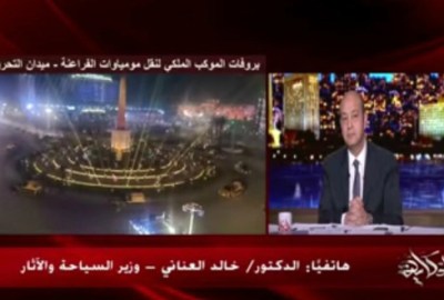 تابع “العناني” خلال مداخلة هاتفية مع برنامج “الحكاية” المذاع على شاشة “mbc مصر” ويقدمه الإعلامي عمرو أديب، أن توقيت عملية النقل سيكون مساءً، مع تجهيز الأماكن التي سيمر بها الموكب بالإضاءات الكافية.