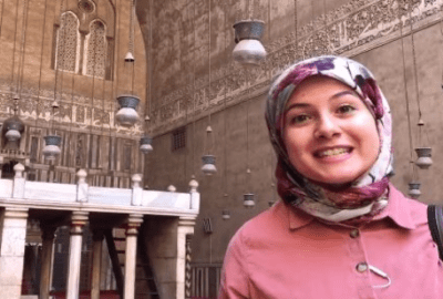 قالت “نور الدين” خلال الفيديو: “من واحد من أجمل المساجد في العالم كله موجود هنا في مصر في منطقة القلعة وهو مسجد السلطان حسن، المسجد ده عمره بيزيد عن 600 سنة”.