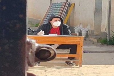 يذكر أنه تم تداول صور لطالب في الصف الأول الثانوي العام، مصاب بفيروس كورونا يرتدي كمامة وجوانتي في يديه ويؤدي الامتحان في فناء مدرسة، عبر موقع التواصل الاجتماعي فيسبوك.