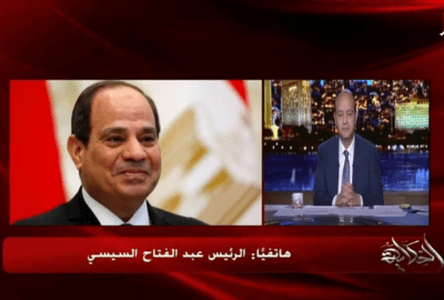 تحدث الرئيس عبد الفتاح السيسي، في مداخلة هاتفية مع الإعلامي عمرو أديب، وعلق على خبر عن ميل عقار في الإسكندرية وإخلاء السكان منه، وعن عدد من المشاكل الداخلية، والمشروعات التي يتم تنفيذها حاليا، في برنامج “الحكاية” المذاع على شاشة mbc مصر.
