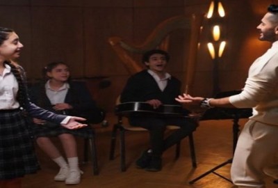 تابع: “من سنين كنت مكان الأطفال الجميلة دول بدرس الموسيقى هنا في الكونسير ڤاتوار ولما كان يدخل علينا فنان مشهور كنا بنفرح أوي وبيبقى عندنا حالة ذهول وكنت بقول يارب في يوم من الأيام أكبر وأنجح وادخل نفس الدخلة دي وأنا فنان مشهور وأشوف نفس النظرة الجميلة دي في عيون التلاميذ والأساتذة”.
