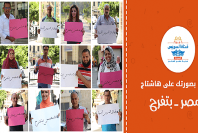حرصا منها على مشاركة المصريين فرحتهم بإفتتاح قناة السويس الجديدة، اطلقت الصفحة الرسمية لرئاسة الجمهورية على الفيس بوك هاشتاج بعنوان #مصر_بتفرح