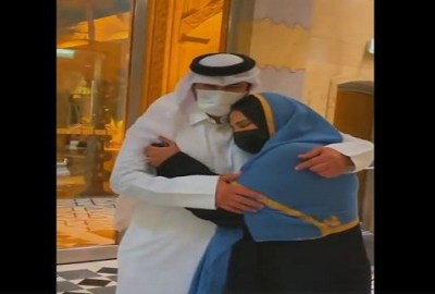 شاركت الفنانة أحلام، الجمهور بمقطع فيديو مؤثر للقائها الأول مع زوجها مبارك الهاجري، بعد عام من غيابه بسبب ظروف كورونا.