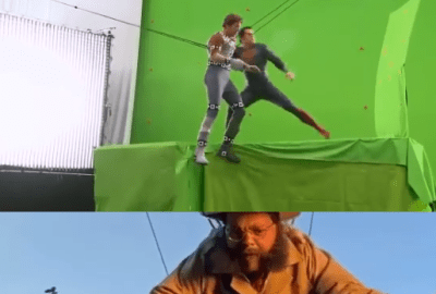 ويظهر أيضا في الفيديو كواليس تصوير مشهد مشابه لـ سوبر مان.