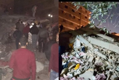 انهار عقار مكون من أكثر من 10 طوابق، بمنطقة جسر السويس في محافظة القاهرة، قبل قليل. عقار جسر السويس