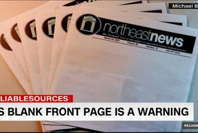 قرّر محررو صحيفة Northeast News في مدينة كانساس سيتي الأمريكية نشر الصفحة الأولى من عدد الأربعاء الماضي فارغة، وهو الأمر الذي اهتمت بدلالاته كافة وسائل الإعلام بما في ذلك شبكة سي إن إن وصحيفة واشنطن بوست.