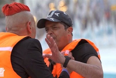 يدخل الضيف بصحبة رامز إحدى المركبات في الملاهي التي يتم رفعها بشكل كبير بضيف مع استمرارها في الاهتزاز، ويبدأ المقلب باستمرار تحرك المركبة بشك عشوائي على ارتفاع ضخم بشكل يرعب الضيف، ويستمر رامز في مضايقته من خلال رش روائح كريهة وضربه وفتح أنبوبة الحرائق، إلى أن يفتح المركبة ويُلقى بالضيف في الماء.