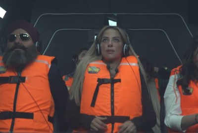 يدخل الضيف بصحبة رامز إحدى المركبات في الملاهي التي يتم رفعها بشكل كبير بضيف مع استمرارها في الاهتزاز، ويبدأ المقلب باستمرار تحرك المركبة بشك عشوائي على ارتفاع ضخم بشكل يرعب الضيف، ويستمر رامز في مضايقته من خلال رش روائح كريهة وضربه وفتح أنبوبة الحرائق، إلى أن يفتح المركبة ويُلقى بالضيف في الماء.