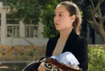 ظهرت الفنانة منة شلبي خلال الإعلان، وهي تحمل ابنتها الطفلة الرضيعة وتخبرها أنها لن تتركها أبدا.