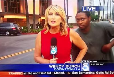 تعرضت المذيعة الأمريكية “ويندى بورش” لموقف كوميدي على الهواء، أثناء اندماجها في تقديم تقريرًا تلفزيونيًا، إذ ظهر فجأة شاب من خلفها واقتحم الكادر، مما أثار خوفها وأصابها بـ”خضّة”.