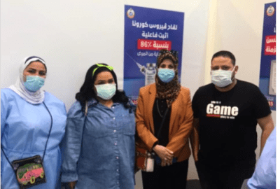 نشرت “سيف” صورة جمعتها بزوجها والأطباء بعد حصولها على اللقاح، عبر حسابها على موقع تبادل الصور والفيديوهات “إنستجرام” وعلقت عليها: “شكرا جدا على النظام والاهتمام والترحيب الجميل ويارب بالشفاء.. أخدت التطعيم ضد فيروس كورونا”.