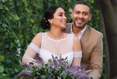 3- على عكس الحفلات المعتادة للفنانين، أقيم عقد القران في حديقة بالهواء الطلق في التجمع الخامس بالقاهرة.