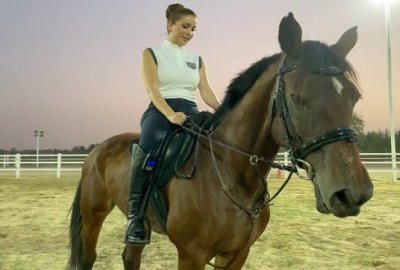 شاركت الفنانة نسرين طافش، الجمهور بمقطع فيديو كشفت من خلاله عن مهارتها في ركوب الخيل.